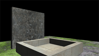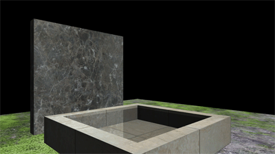 먼저 반사하고 굴절하는 물 기술 적용을 용이하게 하는 간단한 씬을 만들 것이다. 씬에는 평평한 바닥과 물을 담을 수 있는 대리석 수조가 있다. 또한 돌기둥도 배치하여 물이 반사하는 물체가 있도록 한다. 기본 씬은 다음과 같다.